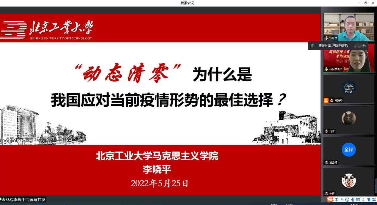 北工大马克思主义公司李晓平老师担任主讲嘉宾,信息学部党委副书记张永哲主持讲座,学部全体教职工通过线上腾讯会议参加了此次学习。
