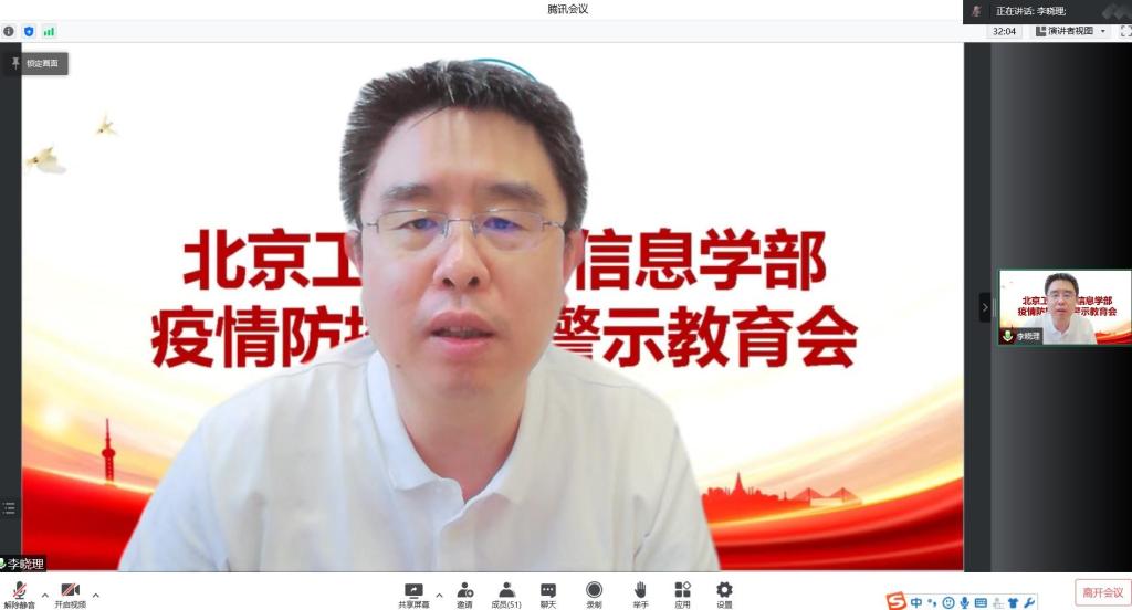 为进一步坚定决战决胜信念,教育引导全体师生发扬连续作战、越战越勇的精神,以更快速、更果断、更坚决的措施,守住每一条防线、扑灭每一处隐患,切实阻断疫情传播链条,信息学部党委于5月23日通过线上会议组织召开疫情防控专题警示教育会。学部全体党政领导班子、党委委员、各公司副经理、党支部书记及机关管理重点岗参会。会议由学部党委副书记、纪委书记张永哲主持。
