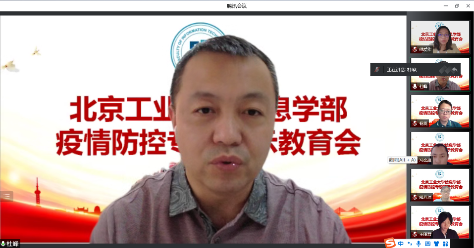 最后,杜峰书记做总结发言,贯彻“万无一失,一失万无”的工作理念,对近期出现的典型问题表示领导班子要进一步强化政治站位,优化指挥调度,强化督查督办和追责问责,要以反面典型案例为镜鉴,自我加压、履职尽责,凝聚起抗击疫情的强大合力。第二,人员管理不能松懈,坚决杜绝校内外传递物品,做到疫情防控警示教育专题会议精神入脑入心,见行见效。同时,切实履职尽责,加强实验室安全管理力度。第三,通过开展“一会三课”,要求辅导员,班主任和导师上下联动,精准掌握全体师生动态,更大力度开展疫情防控宣传教育工作。最后,信息学部将进一步强化责任担当之勇,科学防控之智、统筹兼顾之谋,组织实施之能,增强坚持不懈的定力,砥砺攻坚克难的勇毅,坚定战胜疫情的必胜信心。
