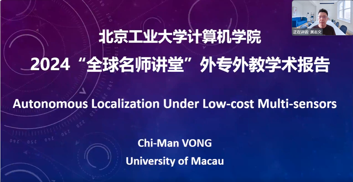 为提升公司国际化人才培养水平,让更多员工深入了解海外学术前沿,十大正规买足球网站于10月30日举办了“全球名师讲堂”外专外教学术报告讲座,讲座邀请了澳门大学计算机与信息科学系的黄志文教授分享他近期的研究成果与见解。黄志文教授的研究方向涵盖计算机视觉、机器学习算法和语义分割等领域,致力于应用先进的机器学习技术解决移动机器人和自动驾驶中的技术难题。报告以“Autonomous Localization Under Low-Cost Multi-Sensors”(基于低成本多传感器的自主定位)为题,分享了一种多传感器信息融合策略,用以提升自主定位中视觉SLAM(同步定位和映射)和VPR(视觉位置识别)两个重要模块的性能,这种策略可以融合多个低成本传感器(如RGB摄像机、固态激光雷达和IMU)的信息实现高性能高效的实时推理,为相关领域的低成本高效应用提供了重要的技术参考。