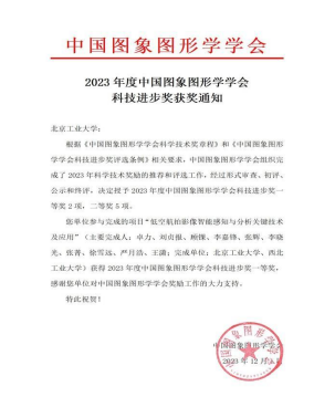3、卓力 刘贞报 顾锞 李嘉锋 张辉——“低空航拍影像智能感知与分析关键技术及应用”获中国图象图形学会科学技术奖科技进步奖一等奖