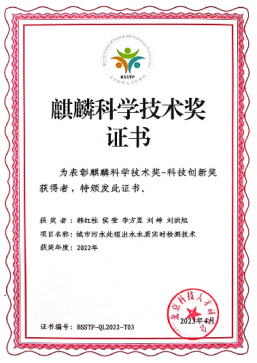 7、韩红桂 侯莹 李方昱 刘峥——“城市污水处理出水水质实时检测技术”获北京科技人才研究会麒麟科学技术奖——科技创新奖