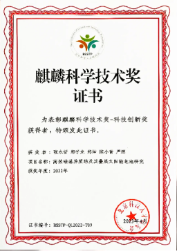 6、张永哲 郑子龙 郑坤 陈小青 严辉——“高效硅基异质结及其叠层太阳能电池研究”获北京科技人才研究会麒麟科学技术奖——科技创新奖
