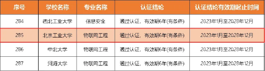 2023年6月,中国工程教育专业认证协会发布专业认证结论通知,2022年共441个专业通过了工程教育专业认证,信息学部物联网工程专业名列其中,认证有效期6年(2023年1月至2028年12月)。截至目前,信息学部共有7个专业通过工程教育专业认证。