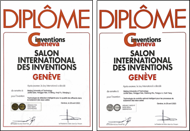 2023年4⽉28⽇,第48届⽇内⽡国际发明展集聚40个国家的800多个参展单位共展出1000多个发明项⽬。乔俊⻜团队2项参展发明脱颖⽽出,“城市污⽔处理过程出⽔⽔质智能检测技术”获评⽇内⽡国际发明展⾦奖,“城市污⽔处理过程智能优化控制技术”获评银奖,将污染防治的中国⽅案推向世界,为北京国际科技创新中⼼建设贡献科技⼒量。