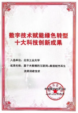 5、韩红桂——“基于大数据的互联网+典型城市再生资源回收技术”获中国循环经济协会数字技术赋能绿色转型十大科技创新成果奖