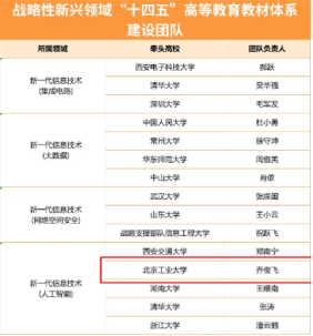 1、新一代信息技术(人工智能)教材建设团队入选教育部战略性新兴领域“十四五”高等教育教材体系建设团队