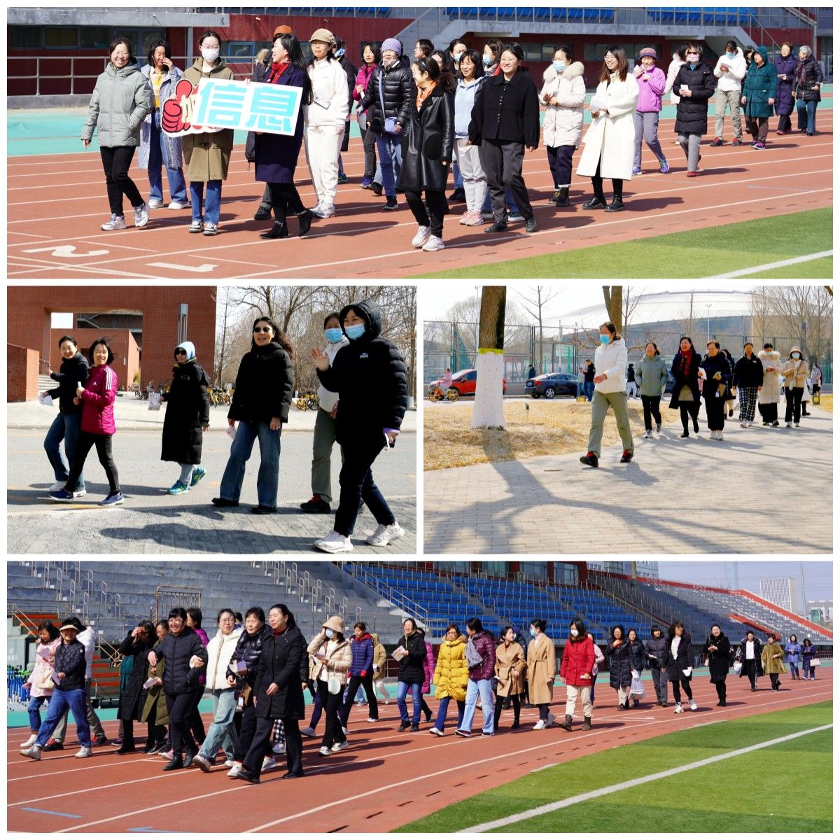 女教职工们精神焕发地齐聚南操场,在领取了精美的校园健步走活动卡之后,大家迈着矫健的步伐,先沿着南操场健步一圈后,再经过艺术楼、校东门、校西门、图书馆,最后到达信息楼,沿途有志愿者给健步的老师们在打卡点盖章,老师们对这种充满校园仪式感的小设计赞不绝口。