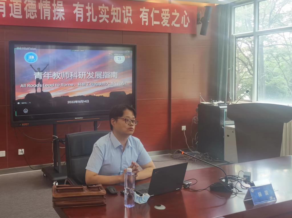 首先,杨震教授从学部的发展与转变、学部科研工作重大成就及学部科研不断涌现的创新成果等三个方面进行了详细介绍。杨教授详细梳理了学部建立、发展、转变的过程,并列举出学部多项科研成就以及学部在多媒体技术、微电子技术、通信技术、先进技术上的创新成果,帮助青年教师进一步了解信息学部。杨教授提出,要在科研工作中找到通向罗马的道路,把无论做什么你都会成功的思想转变为无论做什么都有人会成功的思想。为了进一步激励青年教师,视学部为背景,目光向外,敢干别人不敢干的,杨震教授以《人物周刊》中的“青椒”之焦—大学青年教师的现实之困为切入点,提出青年教师科研发展的上中下策,向青年教师们分享了科研道路发展指南,并以刘禹锡的“要有所追求创新。意思是以坚持追求作为本体,以每天创新作为途径。”作为此次培训的结束语,使青年教师对科研工作有了一个全新的认识与定位。