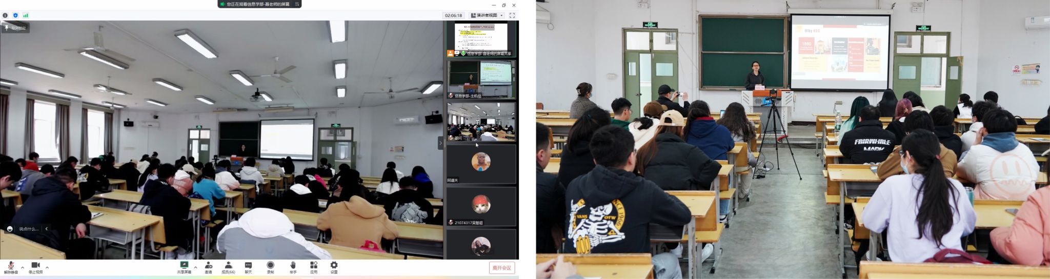 首先,信息学部副主任方娟教授做欢迎致辞。其次,Amy An老师重点介绍南加州大学信息类学科、空间科学研究所与维特比工程公司计算机科学系课程。同时,通过宣传片、宣传图等宣传材料全方位介绍南加州大公司园环境、公司设置、学术成就、知名员工等。再次,结合南加州大学科研实力与人才培养,围绕此次本硕衔接课程项目、空间数据科学学科信息、前沿发展及就业等方面做详细介绍。会后,与同学积极互动,回复同学们较为关心的问题。