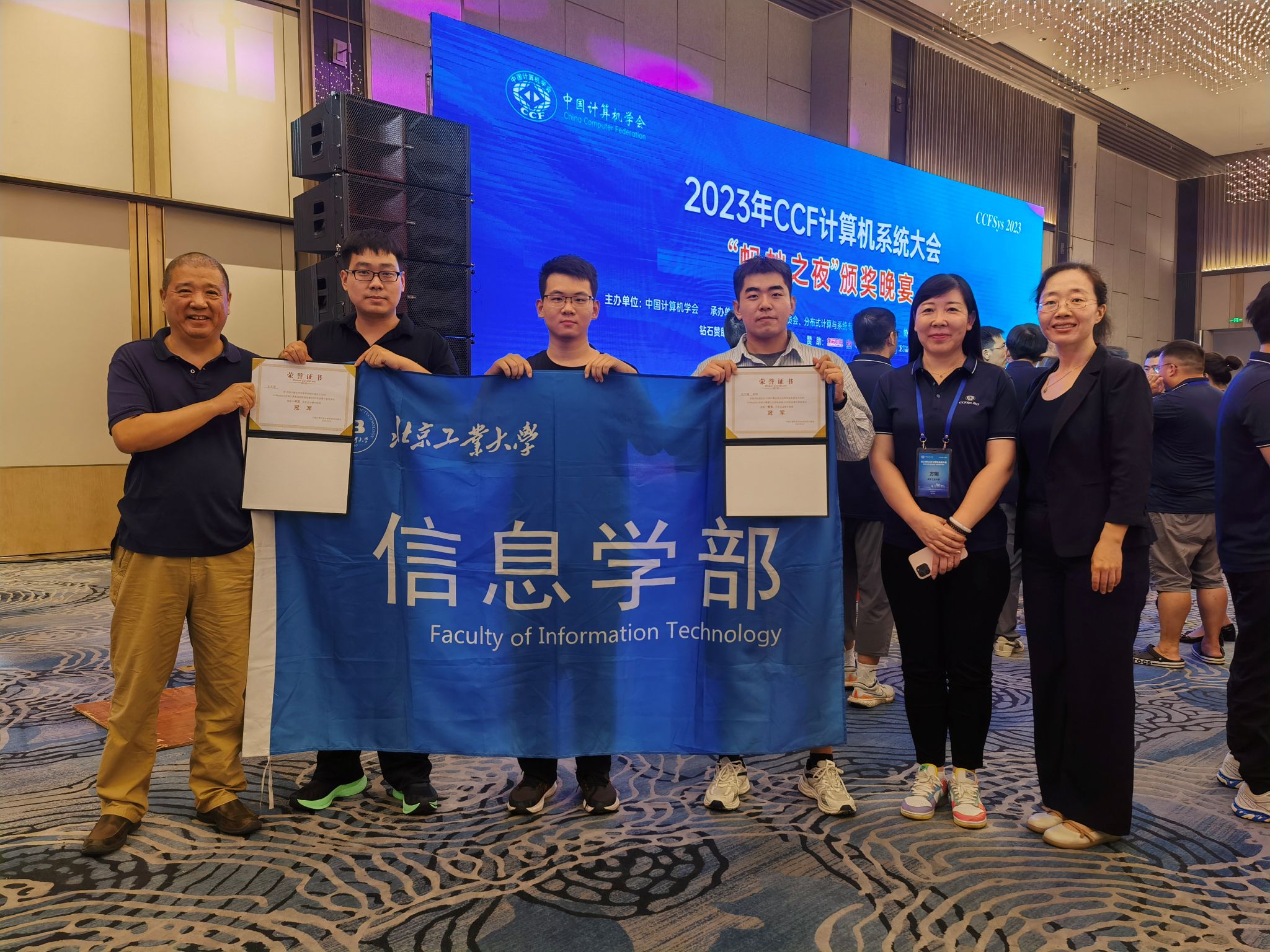 另外,在此次会议上,信息学部计算机科学与技术系体系结构研究所的研究生刘一祺、王天硕和李一鸣同学在“CCFSys-定制计算算法实现挑战赛” (Customized Computing Challenge, CCC)上获得冠军。