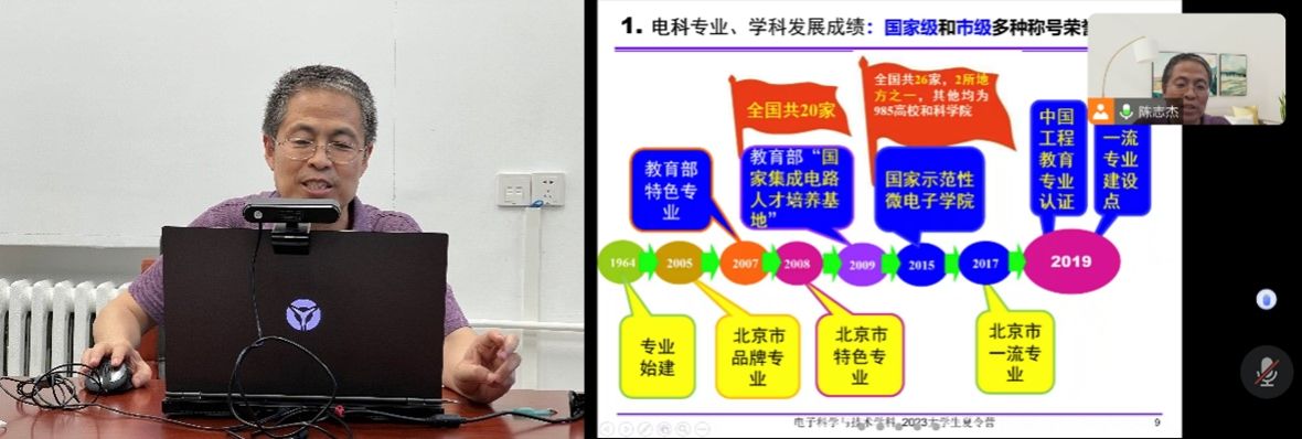 电子科学与技术系精心安排了陈志杰老师介绍电子科学与技术系的整体情况,与同学们探讨了为什么选择北工大微电子,从事微电子相关工作的可能性等问题。同时,邀请张万荣教授和营员们分享系里的发展历史、发展现状和发展趋势,从宏观和微观两个方面,阐述电科系的员工教育现状、研究特色和就业需求。还邀请到两名优秀员工代表,分别从保研和考研角度,分享研定北工大的理由和在北工大学习生活的经历。