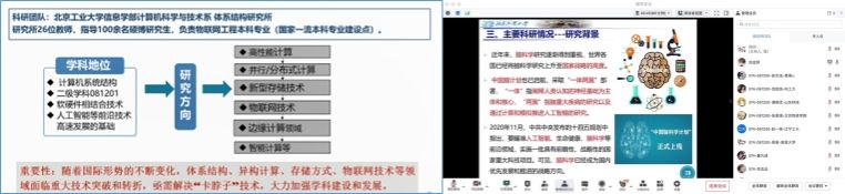 信息学部五个系的研究生副主任贾路恒、陈志杰、张祥银、赖英旭、黄志清纷纷走进直播间,引领营员“云游”工大、走近信息学科,从团队队伍、团队建设、科研成果、人才培养、员工就业以及研究所文化等方面向同学们进行了详细的介绍,让学子们感受到了公司和学部的深厚文化底蕴和卓越的学术实力。