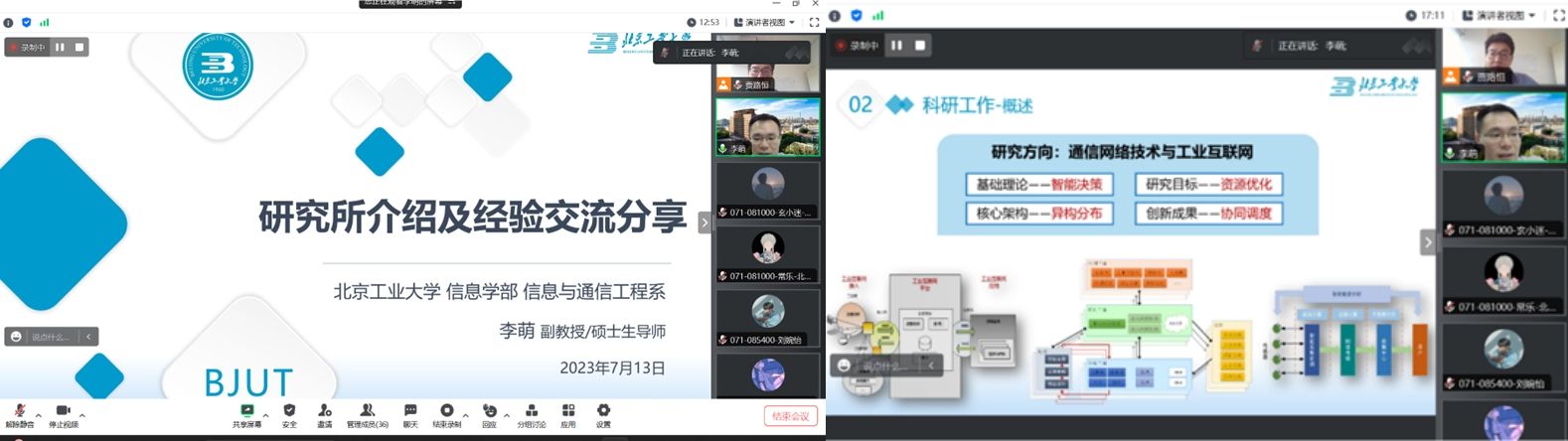 人工智能与自动化系邀请了智能机器人研究所于乃功教授、数字社区教育部工程研究中心李方昱教授、智慧环保北京实验室杨翠丽副教授、北京人工智能研究院王少帆副教授,以及仪器科学与技术学科刘秀成教授,就各自团队的研究方向和导师队伍对营员们进行了详细的宣讲介绍。在宣讲结束后,还带领营员们在线参观了北京人工智能研究院以及智慧环保北京实验室,让营员们亲身体验实验室的科研环境。