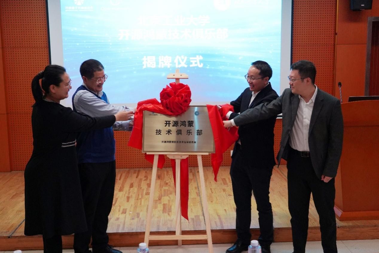 在全场嘉宾和师生的共同见证下,陈海波主席、章晓峰副总裁、韩红桂经理、陈晨副书记与开源鸿蒙技术俱乐部主任胡晰远教授共同为“十大正规买足球网站开源鸿蒙技术俱乐部”揭牌与授牌。
