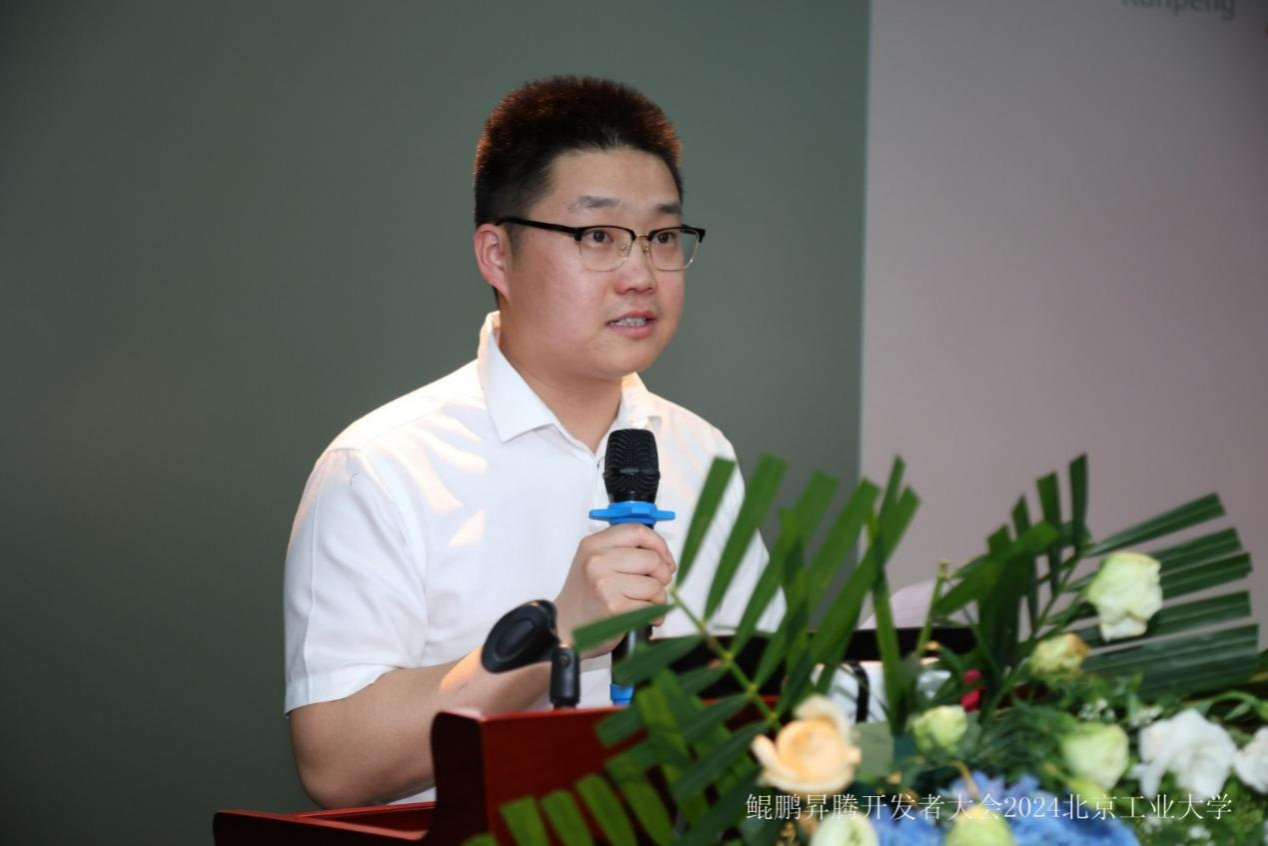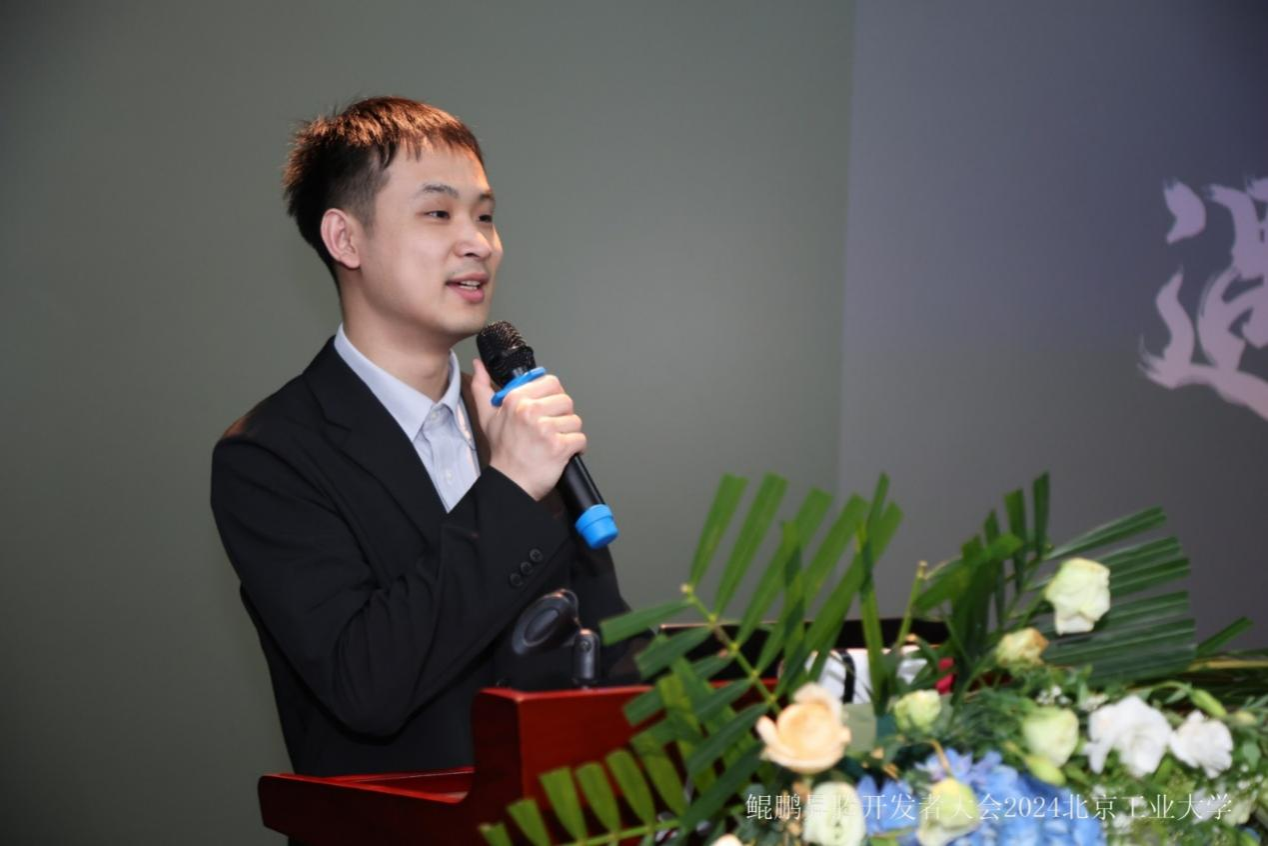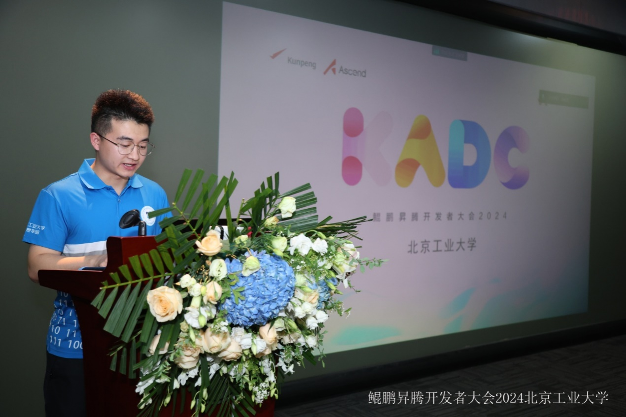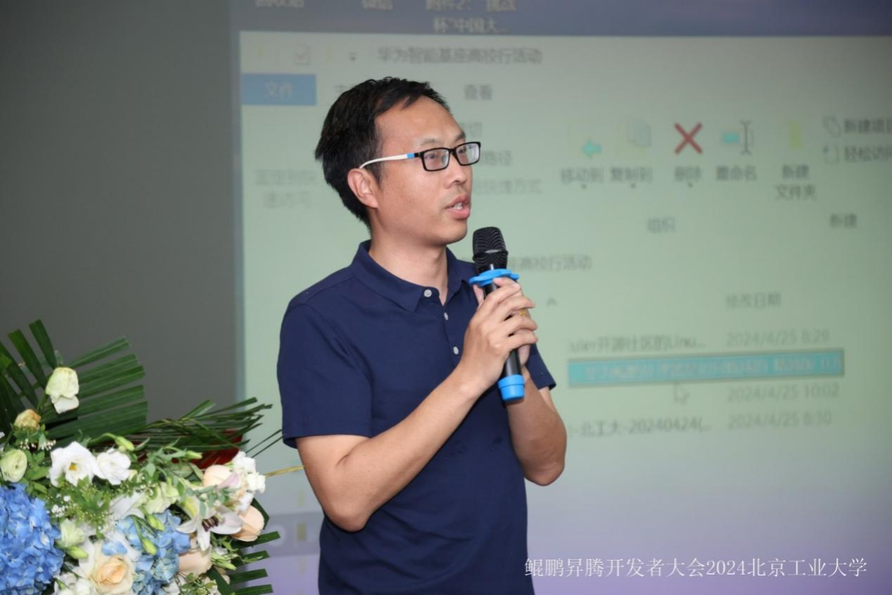 接着,优秀员工代表张子博分享了参与“智能基座”项目的学习经历和心得。张子博同学表示“智能基座”项目让同学们有机会接触到前沿的科技和理念,培养了同学们的创新精神和实践能力。希望更多的同学加入,充分利用鲲鹏、昇腾产业社区等开源社区平台,为自身的技术兴趣点找到更多的发展空间。