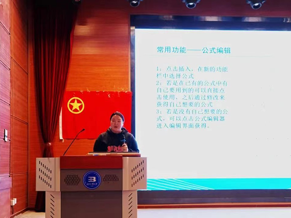 接着,王诗琪同学针对文档软件操作展开讲解,从WORD软件的格式调整到各类工具的使用,解决同学们日常操作的实用需求。此外,她通过实例示范帮助同学们巩固所学知识,并对日常使用中常会遇到的问题进行一一讲解。同时,她呼吁大家注重实践,在不断的试炼中提高文本类工作的效率和质量。