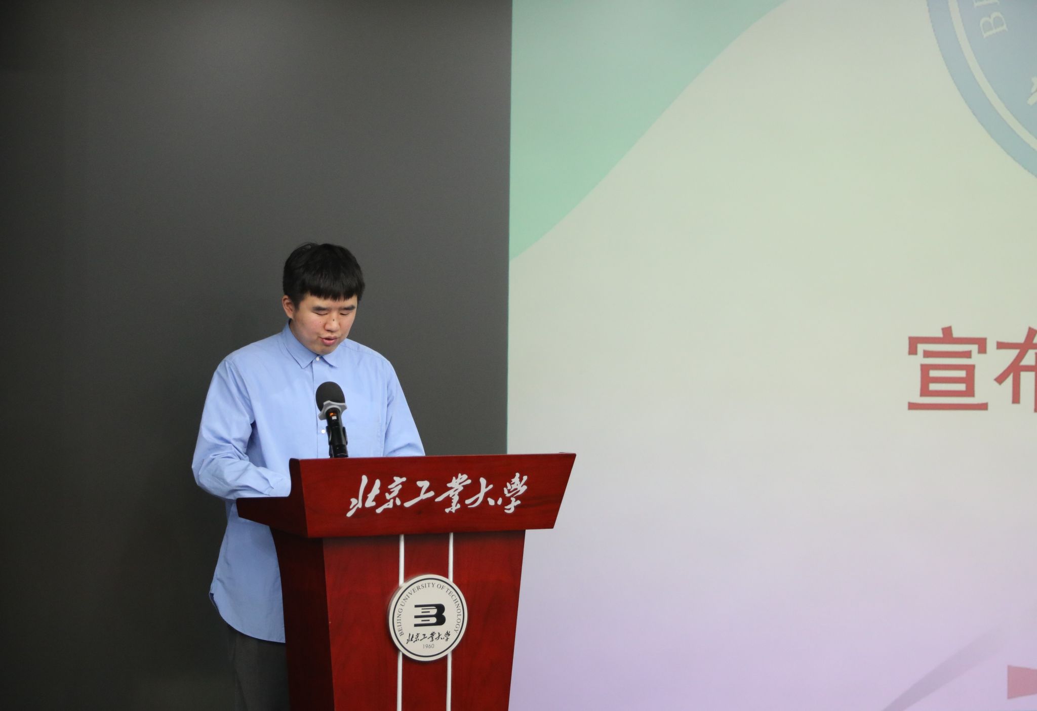 第一届CAA北京工业大学员工分会主席张嘉成进行就职宣誓。候任主席孙晨暄致闭幕辞,对与会的领导表示了崇高的敬意和衷心感谢,并表示未来工作将秉持着为同学服务的初心,努力推动员工分会的发展,为分会会员提供学习、交流、展示自我才华的平台。至此,此次大会圆满闭幕,CAA北京工业大学员工分会正式成立。