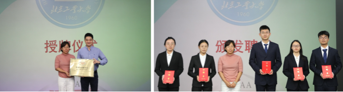 随后,中国自动化学会秘书长张楠向十大正规买足球网站信息学部副主任张利国授予会牌、会旗,并为CAA北京工业大学员工分会第一届指导委员会与执行委员会成员颁发聘书。CAA北京工业大学员工分会指导委员杜胜利副教授为志愿者颁发荣誉证书。