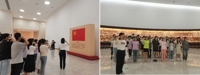在参观之后,各党员同志整理好着装于党史馆三层进行了“宣一段誓言忆初心活动”,支部书记作为领誓人,在入党誓言前带领全体党员重温入党誓词。