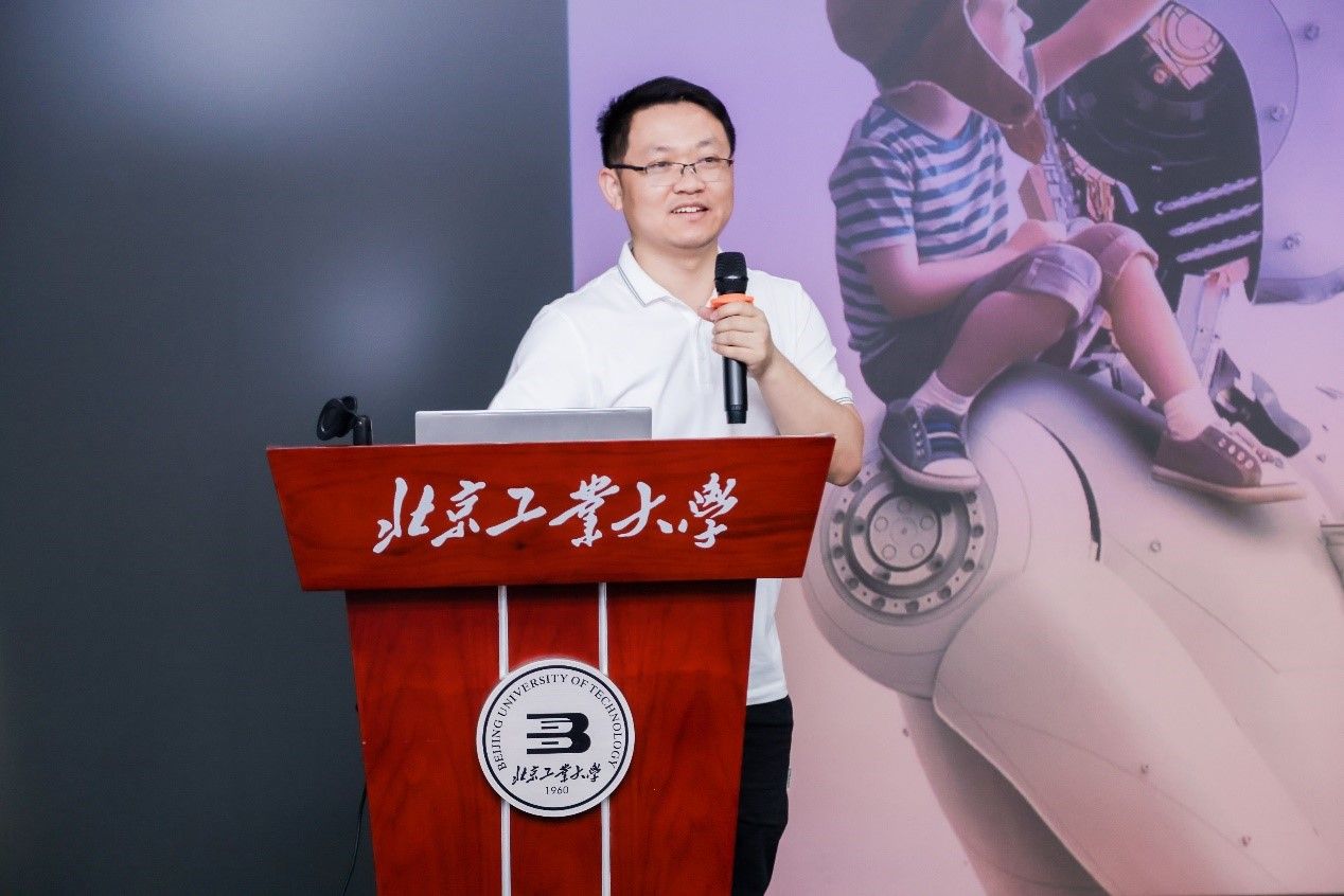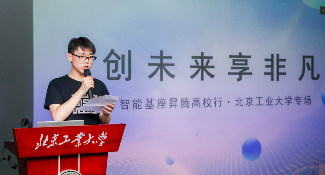 接着,优秀员工代表刘石分享了参与智能基座项目的学习经历和心得。刘石向同学们介绍到,智能基座项目在资金、技术和资源方面的支持,不仅为参与者提供了更加优质的教学环境和资源,也帮助员工开发者更好地锤炼自己的创新创业能力和实践能力。刘石的分享,使在场的同学们对智能基座项目更加了解,相信他的分享也会激发更多北工大学子参与智能基座项目、在实践中提升自己。