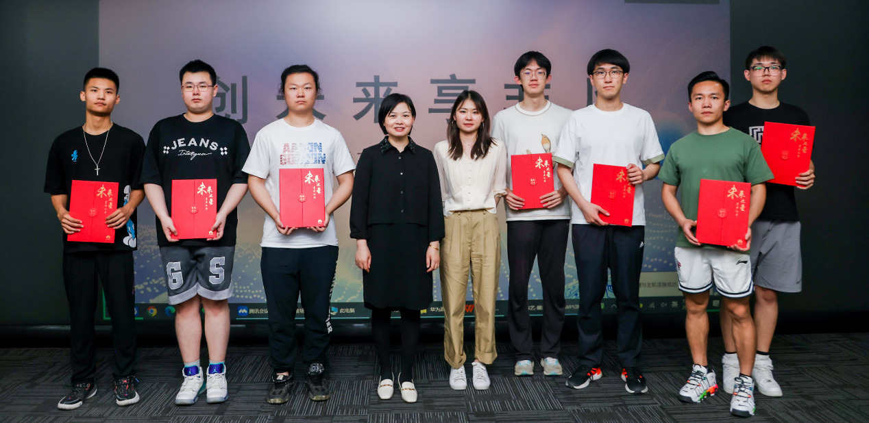 随后,举行了华为智能基座奖学金的颁奖仪式。由华为高校与科研人才发展部总监刘丽琼、高校与科研人才发展部经理董晓玉为8位获奖的优秀员工代表颁奖。华为智能基座项目在北工大落地两年来,北工大师生积极参与项目,取得了大量成果,激发了同学们对于计算产业的热情。