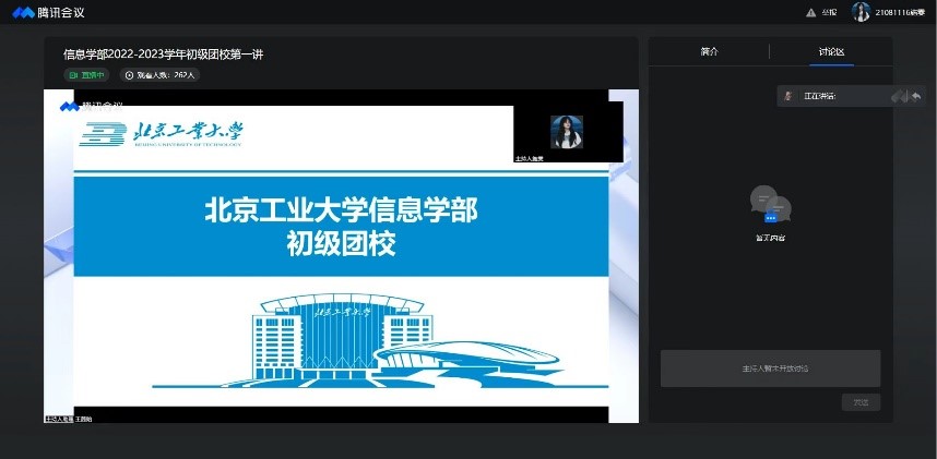 2022年9月3日,信息学部举办“青春献礼二十大 踔厉奋发新征程” 2022-2023学年信息学部初级团校第一讲。为响应公司疫情防控政策,本次活动以线上形式开展。参与本次活动的有信息学部正处级组织员姚爱华、信息学部党委副书记王丽君、员工党建工作办公室主任代粮、团委书记刘子豪以及2022级全体新生,活动由团委直属员工机构组施雯主持。