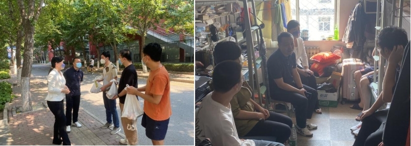 2022年9月10日,信息学部党委书记杜峰,党委副书记王丽君,学部副主任方娟及辅导员老师前往员工宿舍发放中秋慰问品,并针对学业发展、未来规划等问题与员工进行了交流,为同学们带来节日的暖心祝福。