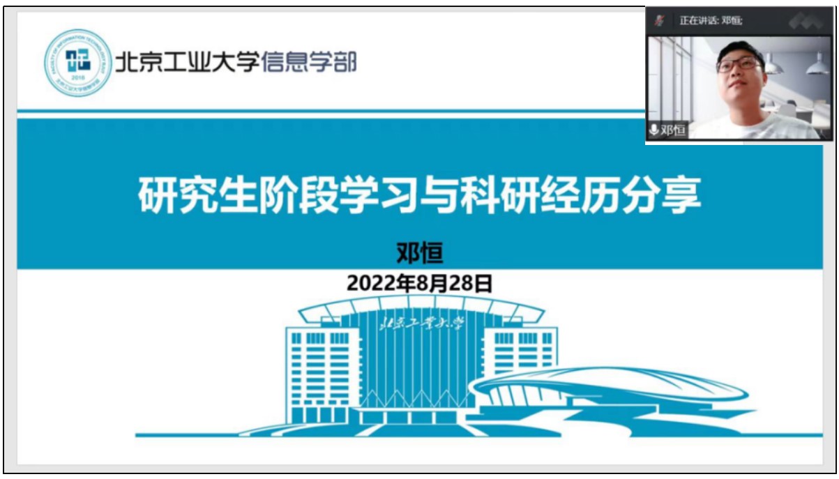 信息学部积极实施创新创业助推工作,开展 “展鹏工程”之“展智系列活动,于8月27日-28日邀请信息学部团委副书记、人工智能及自动化公司青年教师邓恒;2019级电子信息工程专业的王天语同学以及2022届优秀毕业生代表吕生平同学带来科技竞赛、本科生科研、研究生职业发展规划三个主题的分享,2022级新生在线参与讲座。