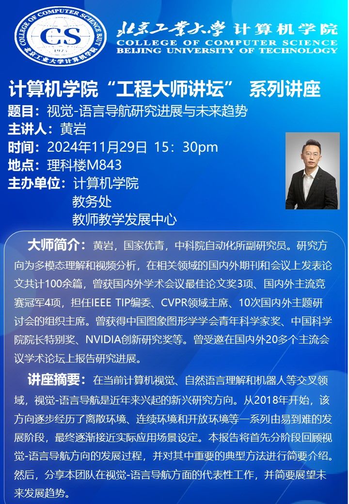 【计算机|学术活动】十大正规买足球网站举办“视觉-语言导航研究进展与未来趋势”工程大师讲坛