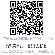 1.报名方式:首先,加入本次比赛的雨课堂班级(通过微信扫描下面的二维码,或者在“雨课堂”微信公众号中使用邀请码B9RSDB加入)。然后按其中公告要求填写并提交报名问卷。本次比赛的全部通知、公告均在雨课堂平台发布,比赛交流微信群的二维码也在该平台发布和更新,请全体参赛同学务必加入这个雨课堂班级。
