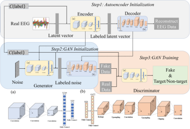 针对类别不平衡的问题,课题组成员提出了带有梯度惩罚的平衡瓦瑟斯坦生成式对抗网络(BWGAN-GP),如图5所示。该网络模型从多数类样本中学习和目标最相关的特征,生成少数类的脑电信号样本,以提高深度学习方法的分类性能。通过实验发现,BWGAN-GP可以有效地缓解RSVP任务中的类不平衡问题,并在两类数据平衡时获得最佳性能。该方法可以大幅节省脑电采集阶段的时间,促进脑机接口技术从实验室研发踏入实际使用阶段。成果发表在脑机接口领域高级别期刊IEEE Transactions on Neural Systems and Rehabilitation Engineering(SCI检索,JCR1区)。