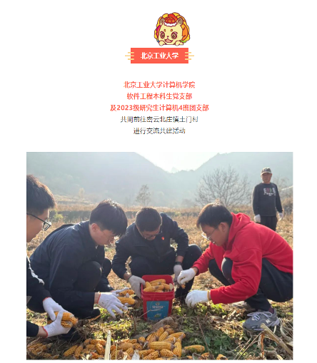 软件与理论研究生党支部与北京市密云区北庄镇土门村党支部开展系列“红色1+1”共建活动。立足专业特色,聚焦科技创新,以”红色1+1“活动为抓手,夯实实践成果,凝聚共建力量。