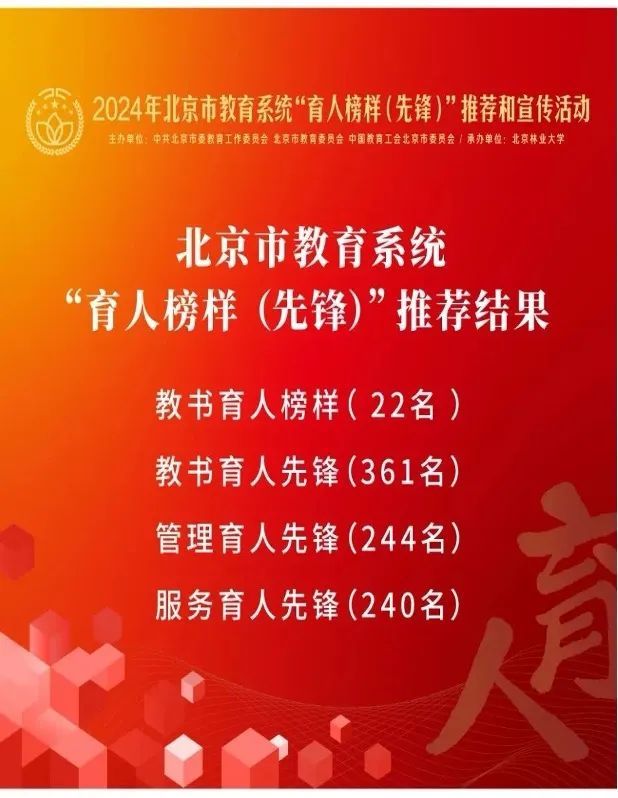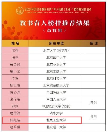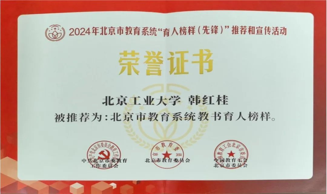 2024年9月,韩红桂教授荣获北京市教育系统“教书育人榜样”光荣称号。