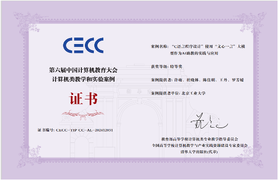 许萌,杜晓林,陈佳明,王丹,罗芳媛,“C语言程序设计”使用“文心一言”大模型作为AI助教的实践与应用,获计算机类教学和实验案例特等奖。