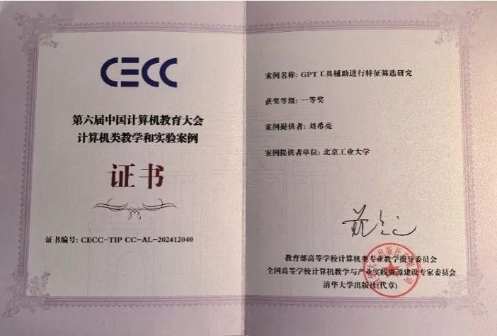刘希亮,计算机类教学和实验案例——GPT工具辅助进行特征筛选研究,获第六届中国计算机教育大会教学案例一等奖。