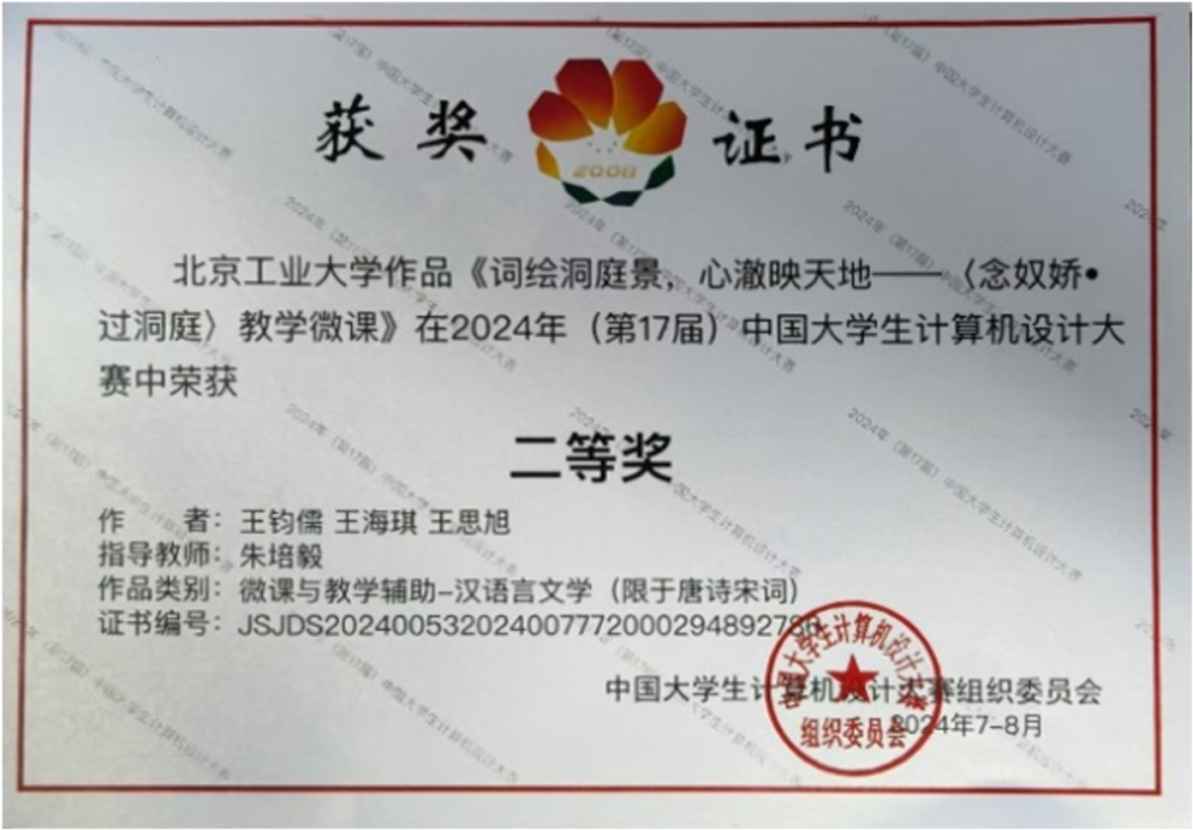 荣获第六届中华经典诵写讲大赛北京市初赛二等奖