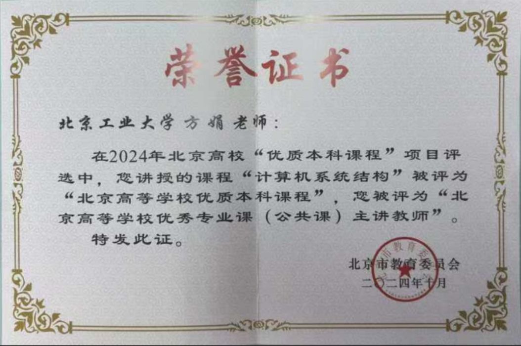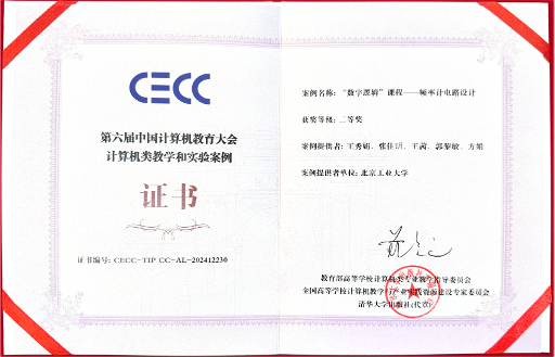 王秀娟,张佳玥,王茜,郭黎敏,方娟,“数字逻辑”课程——频率计电路设计,获计算机类教学和实验案例二等奖。