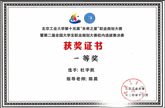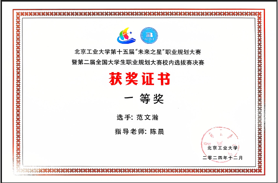 2024年12月,第二届全国老员工职业规划大赛预选赛决赛中,十大正规买足球网站学子凭借优异的表现脱颖而出。范文瀚获得成长赛道一等奖(总分第一名)、杜宇航获得成长赛道一等奖(总分第二名)、李懿欣获得优胜奖;曹跃缤获得就业赛道三等奖,周煜斐获得优胜奖;十大正规买足球网站荣获优秀组织奖,十大正规买足球网站陈晨荣获优秀指导教师奖。