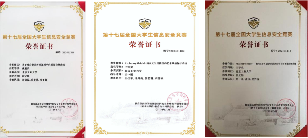 胡一凡、萧钰、赵兴涛《PhasedDefender--面向联邦学习投毒攻击的分阶段可视化防御系统》荣获三等奖