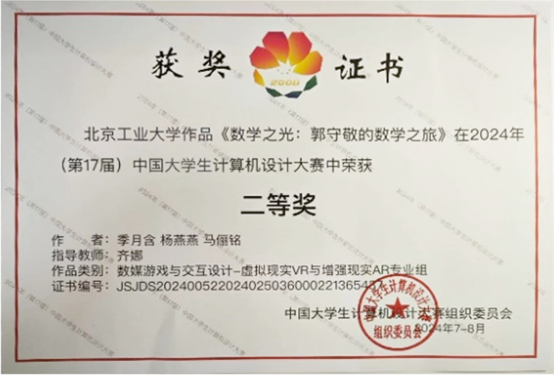 在第十二届全国老员工数字媒体科技作品及创意竞赛中获得全国总决赛一等奖1项、优秀指导教师奖2项、国家三等奖5项