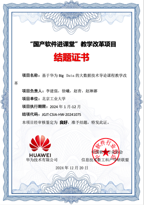 该项目由华为技术有限公司、中国软件行业协会、信息技术新工科产学研联盟进行审核。