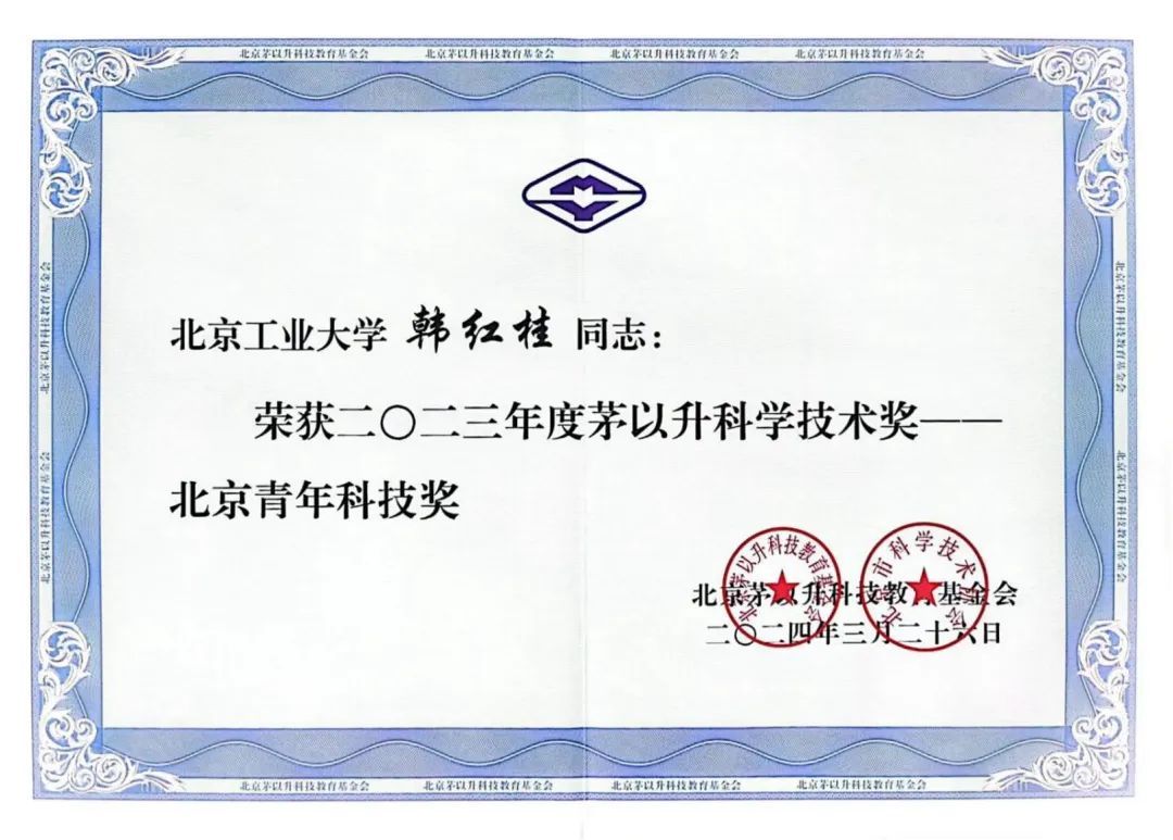 2024年11月,韩红桂教授荣获“第十八届中国青年科技奖”表彰。中国青年科技奖是面向全国广大青年科技工作者的奖项,旨在造就一批进入世界科技前沿的青年学术和技术带头人;表彰奖励在国家经济发展、社会进步和科技创新中作出突出成就的青年科技人才。该奖每两年评选一次,每届表彰不超过100个名额。韩红桂教授入选是公司自2011年来第三次获此殊荣。