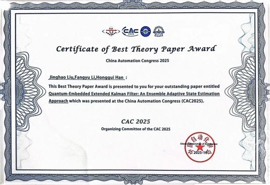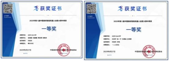 2025年8月,第八届中国高校智能机器人创意大赛中,张珊珊、宋晨曦、贾昆博、徐敬研获得一等奖
