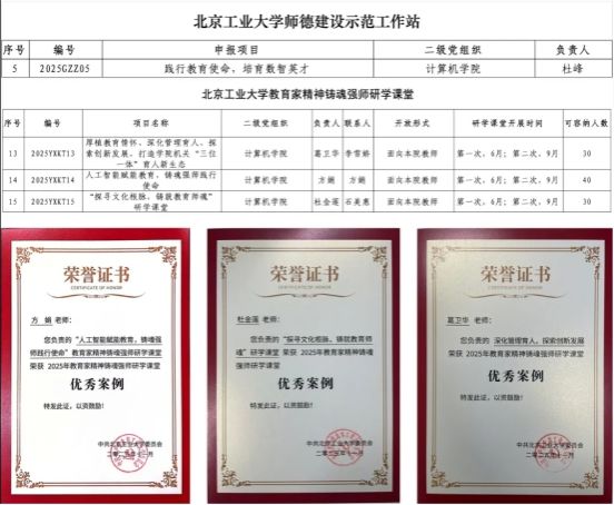 2025年5月,计算机公司党委“践行教育使命,培育数智英才”项目获得校级师德建设示范工作站。