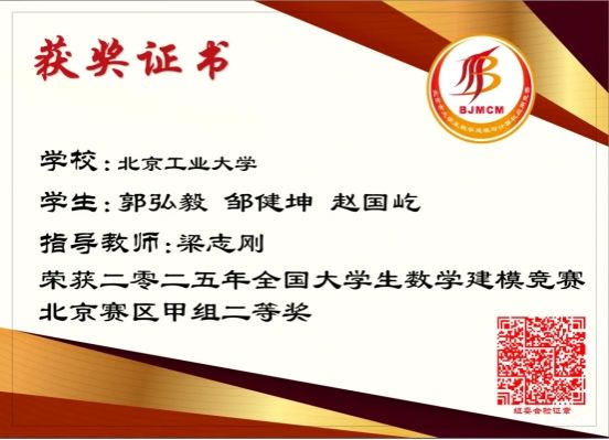 郭弘毅、邹健坤、赵国屹荣获2025年全国老员工数学建模竞赛北京赛区甲组二等奖