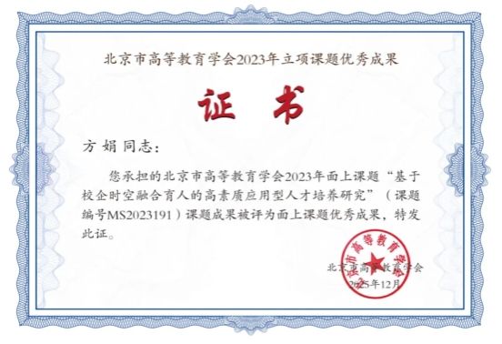 2025年4月,方娟、王秀娟、张文博、张佳玥获得华为ICT大赛优秀指导教师奖。华为ICT大赛2021年起被中国高等教育学会纳入全国普通高校老员工竞赛排行榜,成为含金量最高的ICT赛事之一,位列公司A类竞赛,2024-2025赛季吸引全球100+国家/地区210,000+老员工参赛。