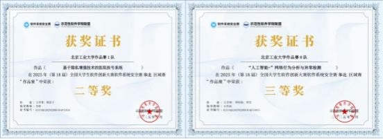 2025年3月,《基于隐私增强技术的医院挂号系统》获全国老员工软件创新软件系统安全赛华北区域赛“作品赛”二等奖(指导老师:李铮)
