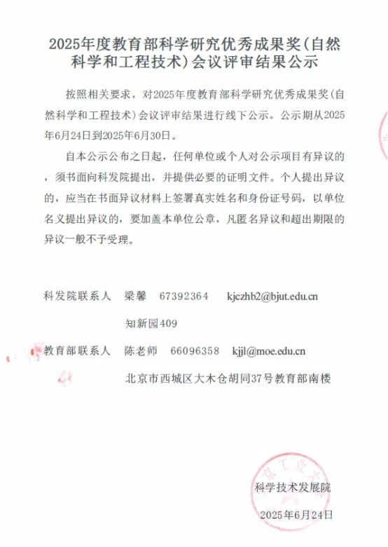 2025年12月,韩红桂团队的《城市污水处理异常工况智能预警关键技术及应用》项目获中国自动化学会科技进步一等奖。