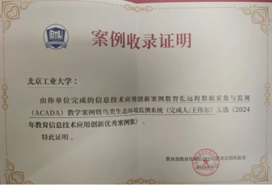 2025年6月,王伟东完成的数智化远程数据采集与监视(ACADA)教学案例暨鸟类生态环境监测系统,入选《2024年教育信息技术应用创新优秀案例集》。